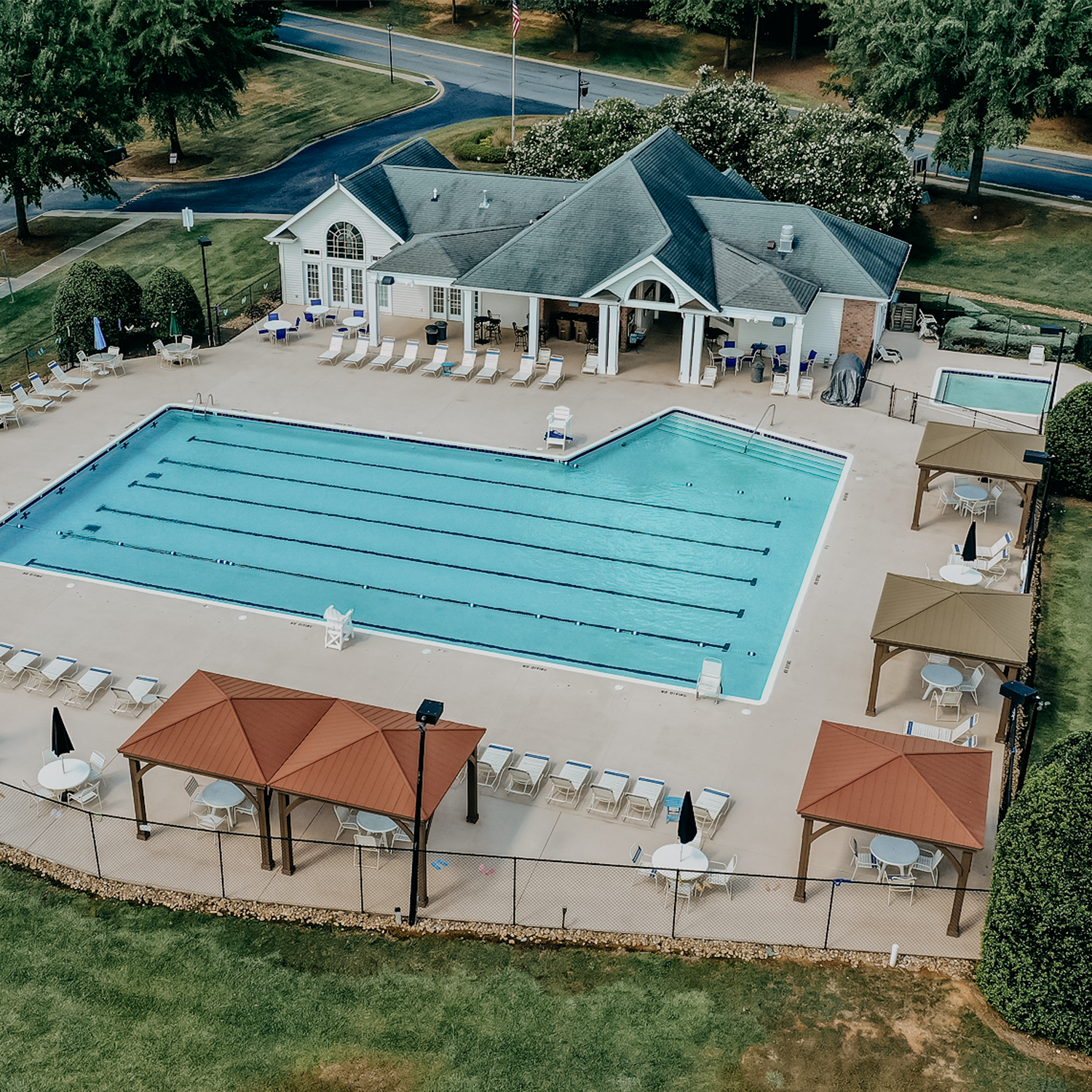 The Clubhouse Pool has a lap-ready swimming pool with a separate baby pool. This is the official pool for use by the Brandon Oaks Sharks, our official neighborhood swim team.